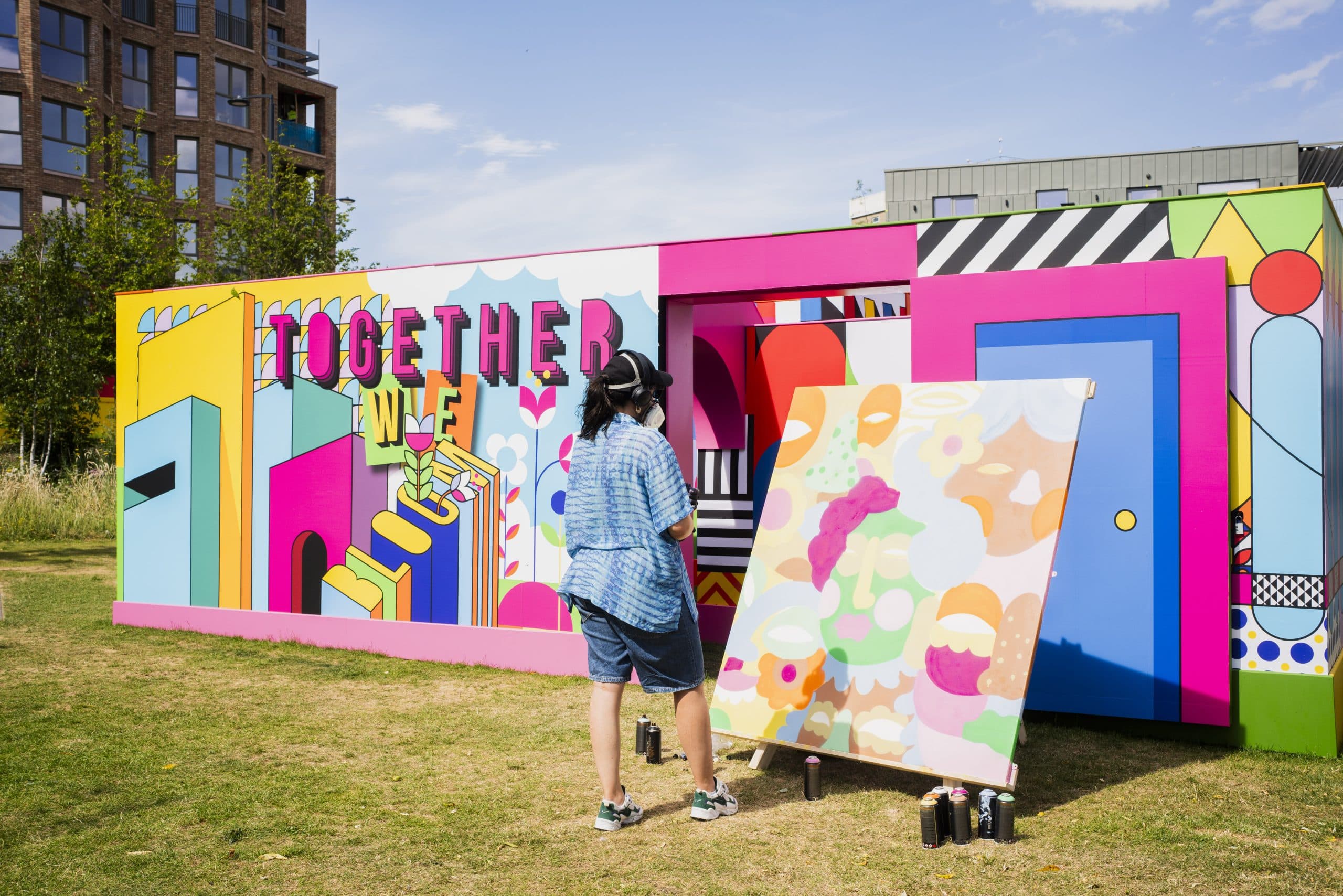 Throughout the summer, three incredible artists – Amara Por Dios, Lois O’Hara and Jo Hicks are adding to the maze artwork with a series of live murals with the last one to be completed during the London Mural Festival, ensuring maximum exposure and footfall. Chilean-Swedish artist Amara Por Dios kick-started the activation with ‘Blooming Together’ – a design showcasing her signature style, inclusive of bright colour clashes, floral motifs and abstract faces which draw inspiration from global folk art, drawing attention to London’s diversity.