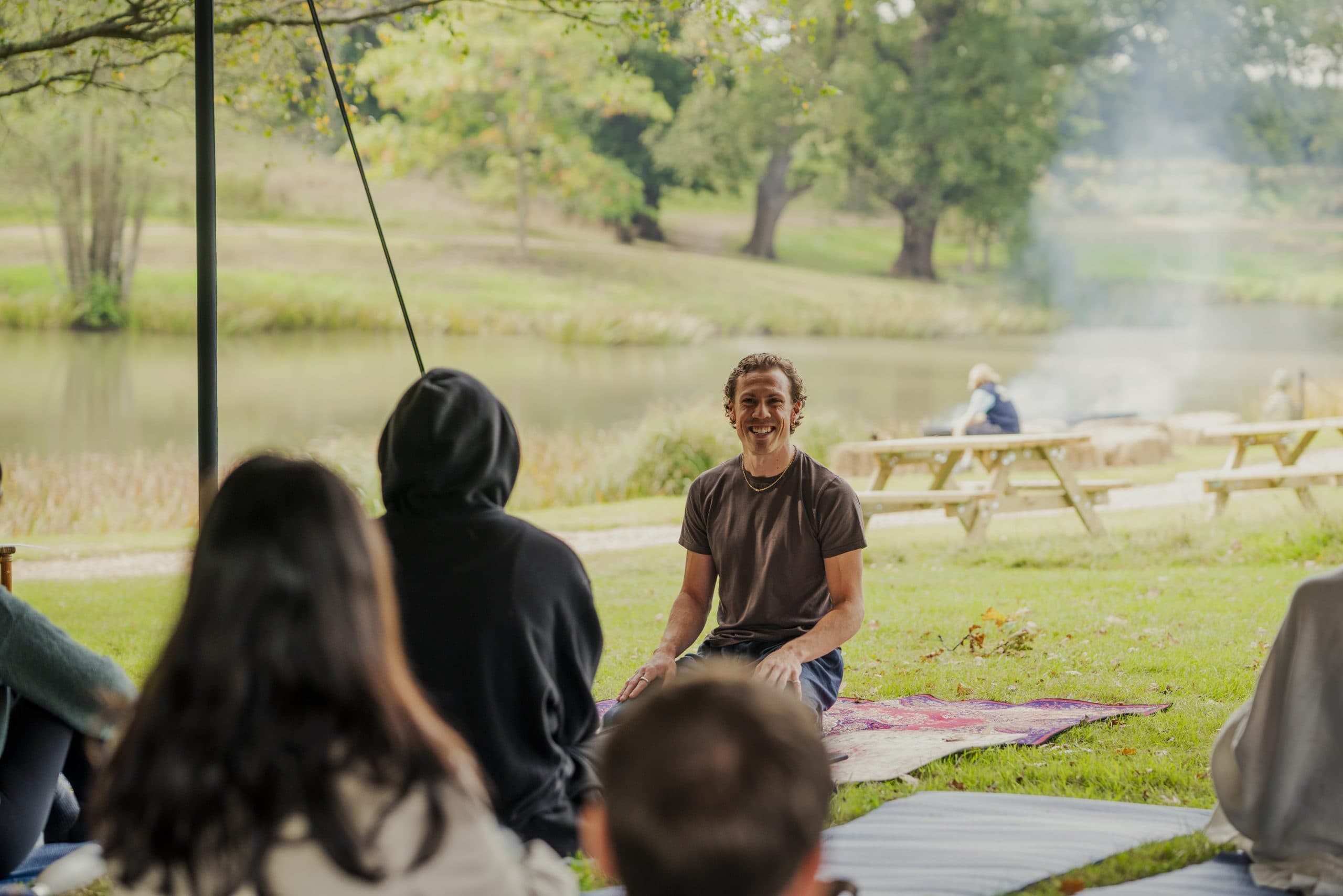 The experience kicked off in true style, with guests arriving by hovercraft, setting the tone for a weekend filled with unforgettable moments. Ditching the traditional ‘organised fun’ approach, we encouraged guests to explore and socialise at their leisure, in line with our client’s vision for a laid-back atmosphere that catered to a diverse range of interests. From rejuvenating wellness zones featuring yoga and breathwork sessions to fire-cooking dinners and food trucks, every detail was thoughtfully crafted. Central to the festival’s energy was a custom-built pub serving as a bustling social focal point, complemented by live music, DJ sets, and a woodland rave. Watersports and adventure activities kept the excitement levels high, offering moments of both adrenaline and camaraderie.